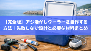 アジ活かしクーラーは自作できます。失敗しない設計(容量・酸素・水温)から材料、作り方、匹数の目安まで完全解説。20〜30L設計で長時間アジを元気に保つコツも紹介します。