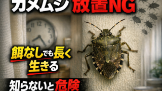 カメムシは放っておけば死ぬ?実は餌なしでも数日〜数週間以上生きるため要注意。放置が危険な理由や臭い・増えるリスク、今すぐできる対処法を解説。