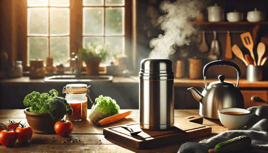 たとえば、熱湯を注いでおくだけで野菜やオートミールがふっくら柔らかくなったり、外出先で温かい飲み物を楽しめたりします。