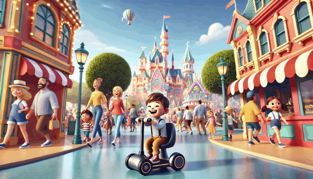 テーマパークでは、小回りがきく軽量バギーや、乗れるキャリーケースが便利です。