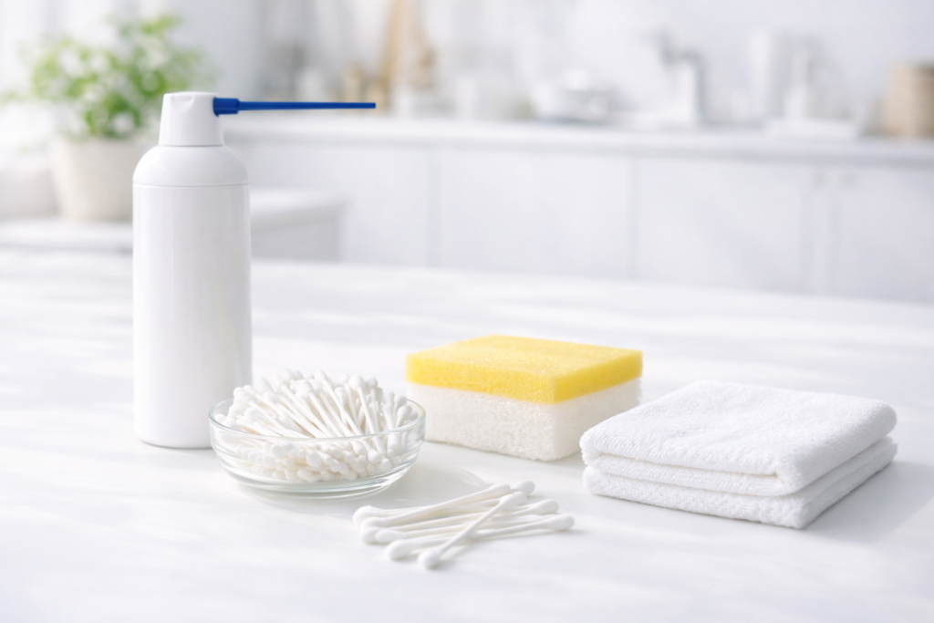 力を入れすぎず、なぞるように使うのがポイントです。 - 柔らかめのスポンジ
