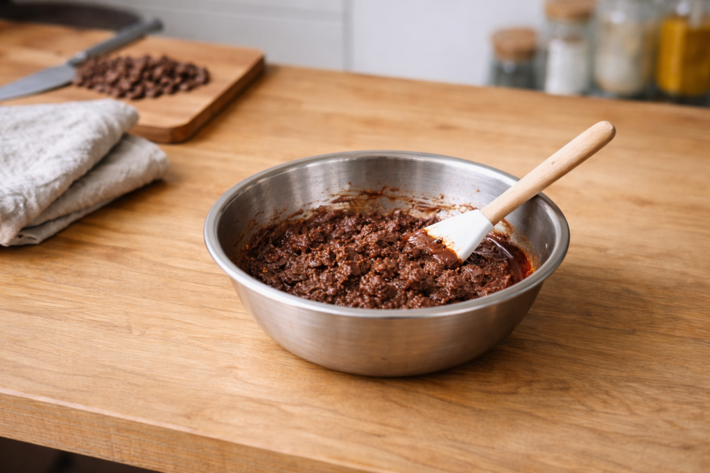 力を入れて混ぜる必要はなく、チョコが自然に溶けていくのをサポートするイメージで十分です。