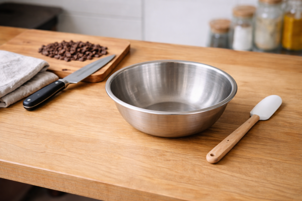 ここからは、実際にチョコを湯煎で溶かすときの基本手順を、順番に見ていきましょう。