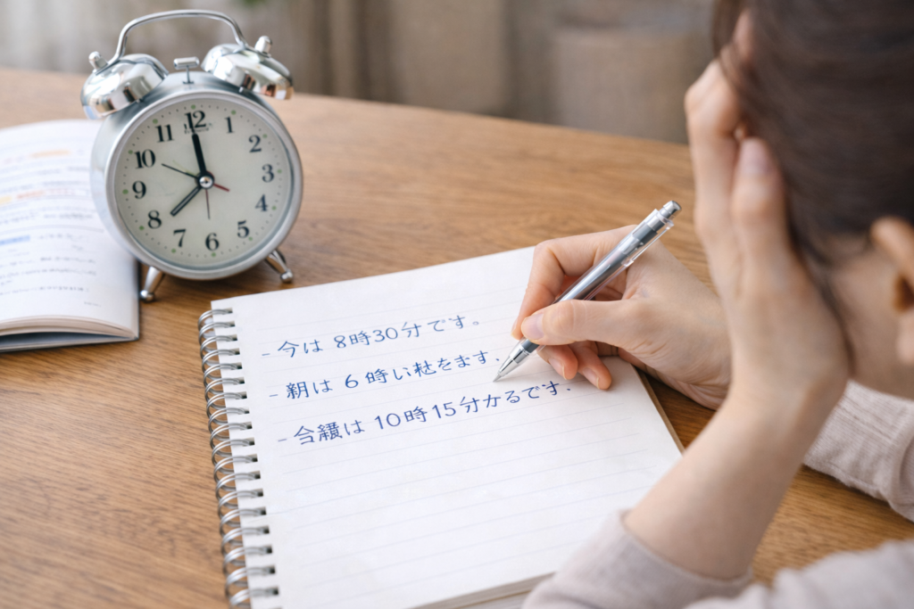 日常会話では、「〇時」「〇分」を使った時刻表現が頻繁に登場します。
