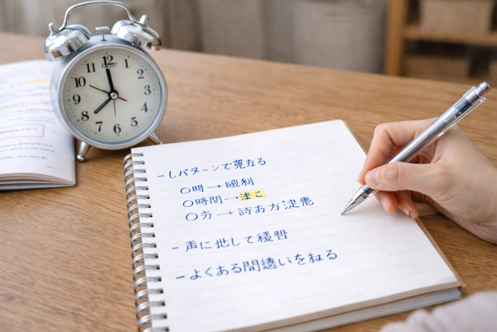 間違えやすい部分ほど、声に出して練習する効果が高くなります。