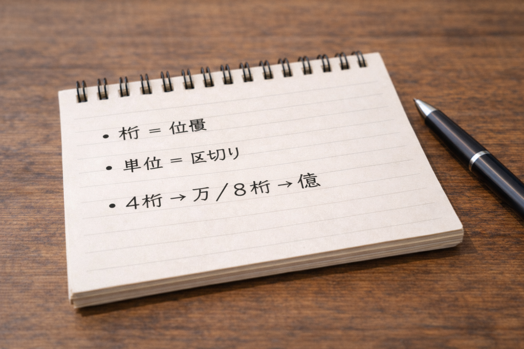この記事では、桁と単位の違いをルールとして整理し、誰でも迷わず数字を読めるようになることを目指します。