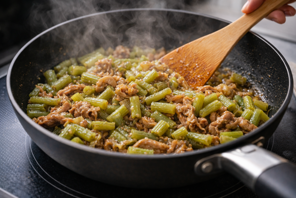 水分が気になる場合は、先に軽く乾煎りしてから調味すると味がまとまりやすくなります。