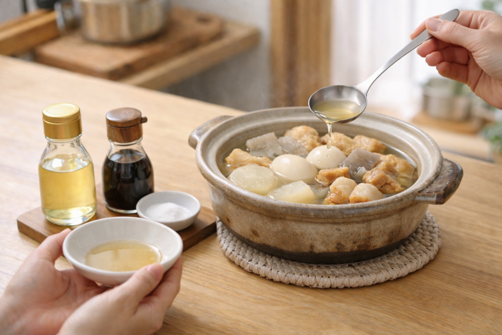 少しずつ加えることを心がけることで、おでんの優しい味わいを保ちながら調整できます。