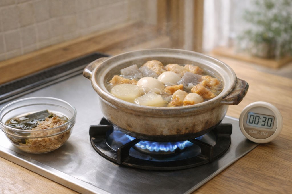 おでんは水分量が多い料理なので、少し煮詰めるだけでも味の印象が大きく変わることがあります。