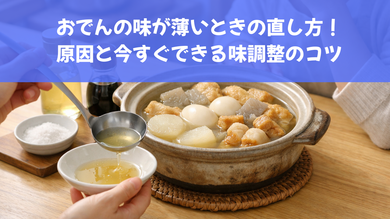 おでんの味が薄いと感じたときは、出汁のバランスを整えることでほとんどの場合は改善できます。