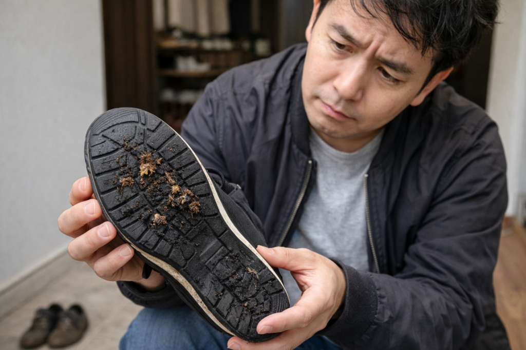 そのまま放置すると、靴の裏に汚れや菌が残り、家の中に持ち込んでしまう可能性があります。