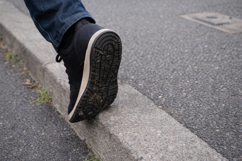 - 地面や段差で靴底を軽くこすって汚れを落とす