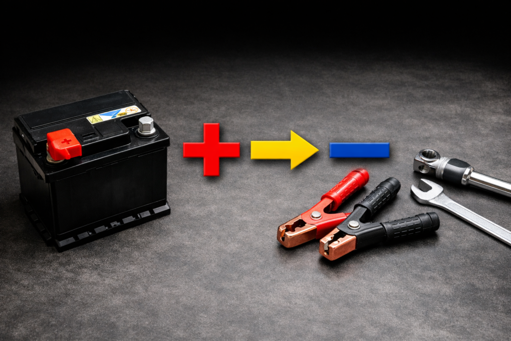 バッテリー交換をするとき、「プラスから触るべき?」と迷う方は多いですが、結論から言うと順番が非常に重要です。