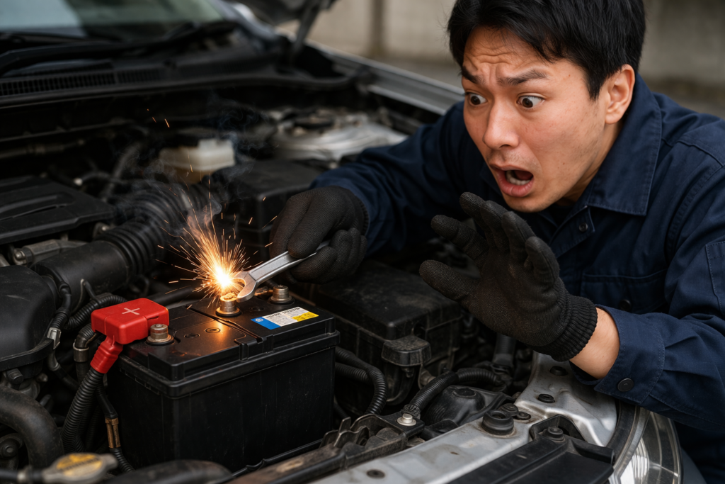 バッテリー交換で特に注意したいのが、「プラスから外してしまうことによるリスク」です。