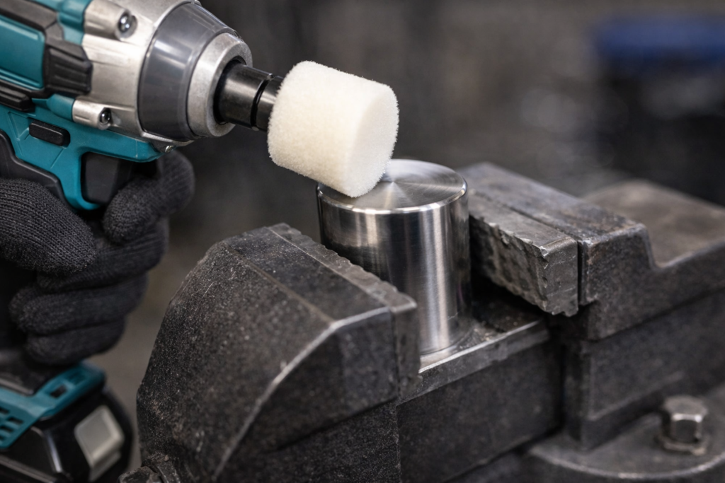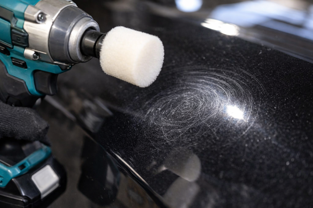 インパクトドライバーは回転機能を持っているため、バフやスポンジを取り付けることで磨き作業に応用できます。