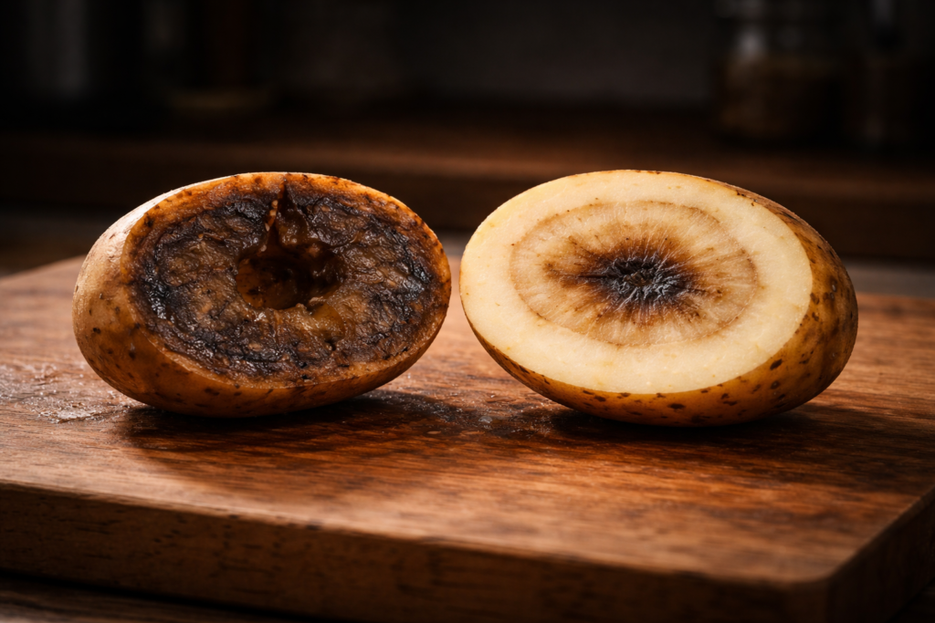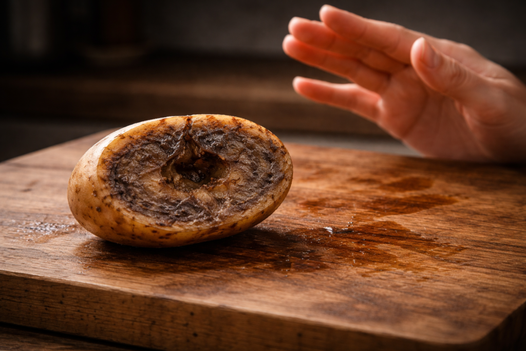 このような状態は、じゃがいもが傷んでいたり、内部で腐敗が進んでいるサインです。