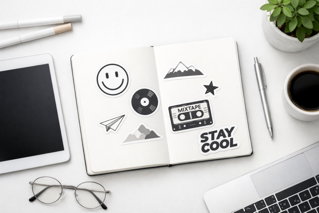 余白があることで、ステッカーひとつひとつが引き立ち、洗練された印象になります。