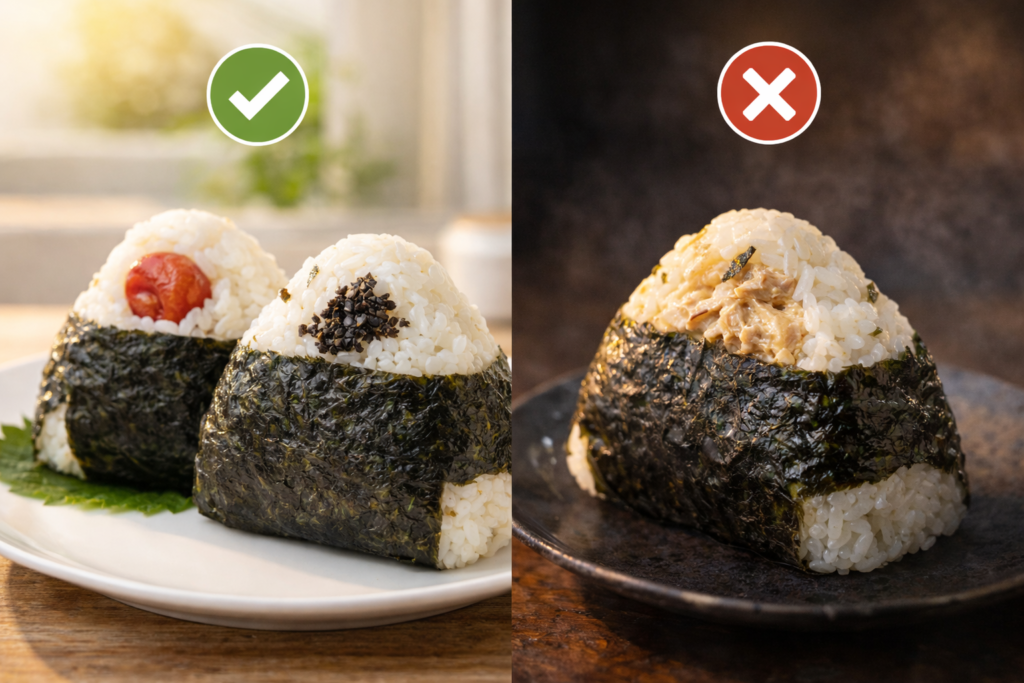 朝作ったおにぎりを夜まで安全に食べたい場合、具材選びはとても重要です。