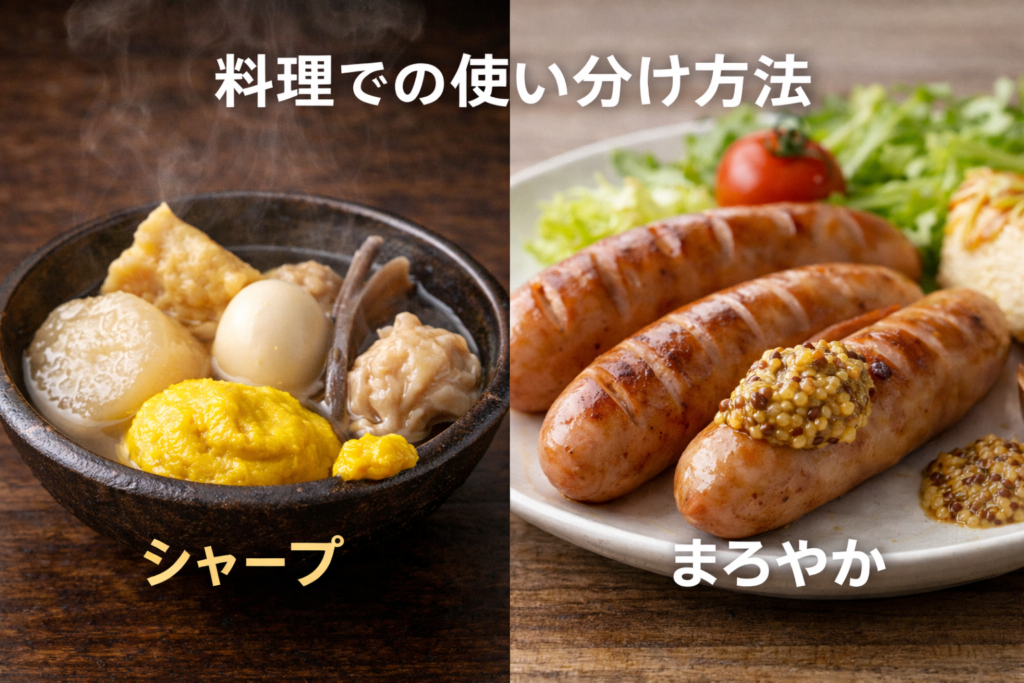 このように整理すると、「シンプルな辛味=カラシ」「風味を楽しむ=マスタード」という違いが見えてきます。