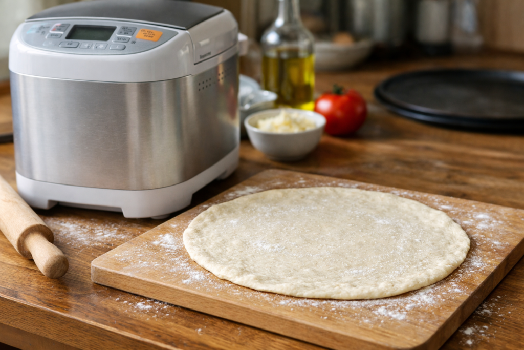 この記事では、ホームベーカリーを使ってクリスピーピザ生地を作る方法を、配合・手順・焼き方までわかりやすく解説しました。