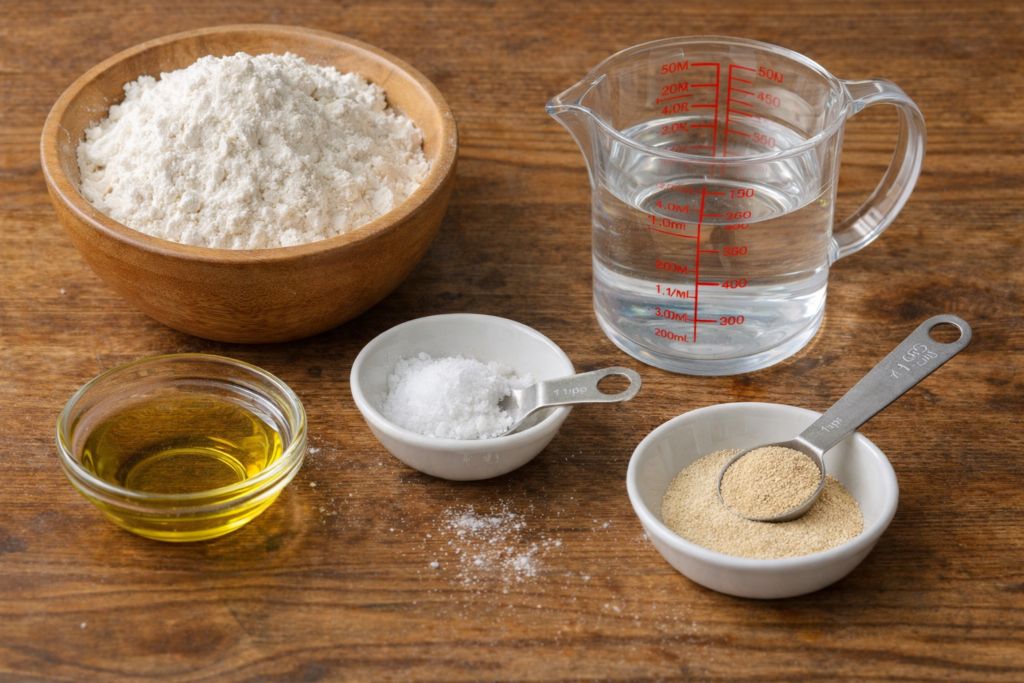 以下は家庭用ホームベーカリーで作りやすい、クリスピーピザ生地の目安レシピです。