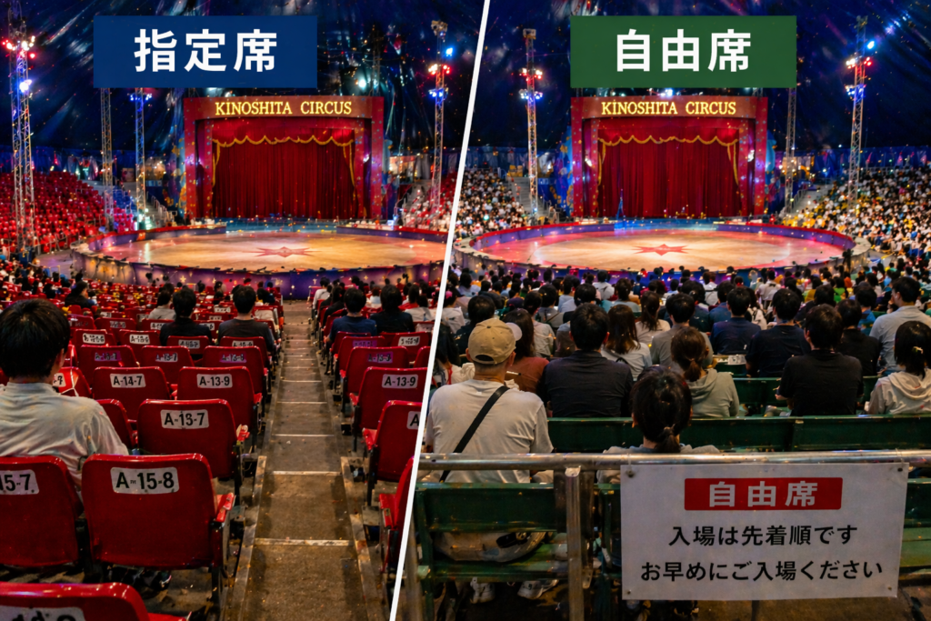 木下大サーカスでは、指定席と自由席のどちらを選ぶかも大きなポイントになります。